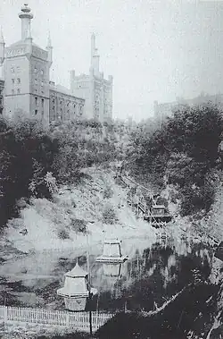 Die für die Region ungewöhnlichen steilen Hänge wurden zu einer romantischen Gebirgslandschaft gestaltet. Es wurden steile Serpentinenwege angelegt, die hinab zum 24 Meter tiefer liegenden See führten. In dem Felsen bestand ein Tunnel. Auf dem auch als Schwanenteich bezeichneten See gab es ein Schwanenhäuschen. Es hatte im Dunkeln eine prächtige bengalische Beleuchtung. Auf dem Teich konnten Ruderboote ausgeliehen werden. Die durch die Steilwände geprägte Akustik führte dazu, dass im Steinbruch gerne Chöre auftraten.[1]
