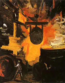 Die künstlerische Umsetzung dieser Faszination mündete in einem umfangreichen Bilder-Zyklus „Licht und Dunkel – Bilder aus Stahlwerk und Bergwerk“, der von der Österreichischen Arbeiterkammer (AK) unterstützt und auch erstmals in der AK Wien öffentlich präsentiert wurde; Ausstellungen des Zyklus in ganz Österreich folgten.