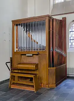 Die Orgel stammt aus einer Kirchenauflösung in Vlaardingen bei Rotterdam und wurde durch die Firma Peter ab- und in der Kölner Kirche wieder aufgebaut und in Teilen neu überholt.[15] | |||