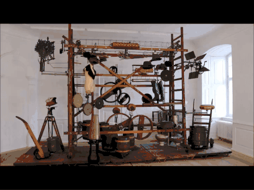 Seit April 2022 präsentiert das Mechanicum in der Asbachgasse in Rüdesheim in den Salons der ehemaligen Chefetage der Asbach Uralt Brennerei Willi Reiches kinetisches Werk The piano is still baking.