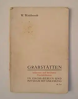 Willi Wohlberedt verbrachte 40 Jahre seines Lebens damit, auf 250 Friedhöfen im Raum Berlin nach den Gräbern Prominenter und weniger Prominenter zu suchen. Er konnte insgesamt 5.240 Grabstellen samt Kurzbiographien in vier Bänden seines durchgehend paginierten Verzeichnisses der Grabstätten bekannter und berühmter Persönlichkeiten in Groß-Berlin, Potsdam und Umgebung verzeichnen. Die Bände erschienen in günstiger Ausstattung im Selbstverlag.