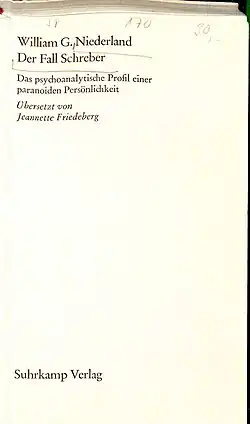 - ↑ William G. Niederland: Der Fall Schreber : Das psychoanalytische Profil einer paranoiden Persönlichkeit, S. 11.