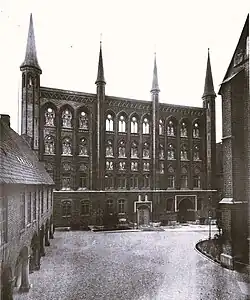 - ↑ Schwiening baute gerade das backsteingotische Rathaus im neugotischen Stil um.
