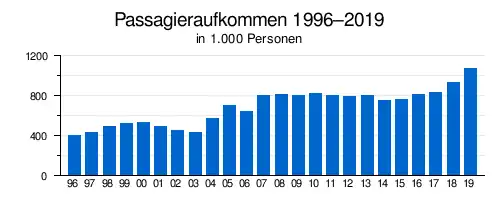 | Jahr | Passagierzahlen | Luftfracht (Tonnen) (mit Luftpost) |