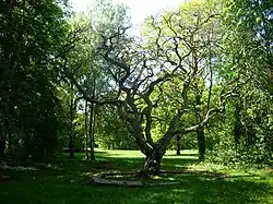Im an die Pleiße grenzenden Schlosspark stehen dendrologische Kostbarkeiten wie die alte panaschierte Sumpf-Eiche, der Silber-Ahorn und eine seltene Süntelbuche, ein von Börries von Münchhausen senior 1886 gepflanzter Sämling der bekannten Tilly-Buche. Im Jahr 2006 wurde in unmittelbarer Nähe der alten Süntelbuche, welche im Jahr 2007 bedingt durch Alter und Vandalismus endgültig abgestorben ist, eine neue Süntelbuche angepflanzt. Der Park wird in den Werken des Balladendichters Börries von Münchhausen mehrfach beschrieben als „Ein Schloß in Wiesen“.