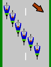 Eine Strategie im Wettkampf ist, sich jeweils seitlich versetzt im Windschatten zum Vordermann zu positionieren, das heißt „Windstaffeln“ zu bilden.[1] Sie verlaufen in Fahrerreihen diagonal über die Straße und sind durch die Straßenbreite begrenzt. Die eigentliche Windkante ist dabei nicht der Rand der Straße, sondern der Bereich zwischen dem Straßenrand und dem Straßengraben, der in der Regel über keinen Belag verfügt und unbefestigt ist.[2] Als Doppelreihe im Belgischen Kreisel ist die Anzahl möglicher Fahrer in der Gruppe entsprechend höher.