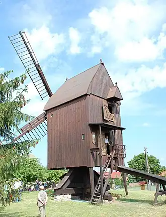 Die Bockwindmühle wurde im Jahr 1864 errichtet. Ursprünglich waren zwei der vier Flügel der Mühle mit Hecht’schen Jalousien, die anderen mit einer Besegelung ausgestattet. Nach dem Verfall der Mühle wurde sie ab 1995 schrittweise saniert, alle Flügel sind heute für Besegelung ausgerüstet.
