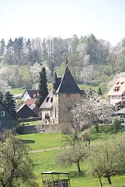 | • 1961: | 227 evangelische (= 93,42 %), 10 katholische (= 4,12 %) Einwohner |