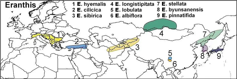 Die Gattung Eranthis ist in Eurasien verbreitet.