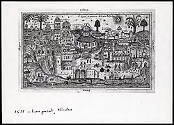- Der französische Zeichner Nicolas Loupvant zeichnet eine detaillierte Ansicht der Stadt Jerusalem, die topografische Elemente mit symbolischen Darstellungen religiöser Stätten kombiniert.[7]
