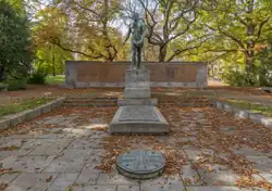 Im Zentrum des Parks befindet sich die Bronzeplastik eines Sämanns, der mit Totentafeln[1] an die Gefallenen des Ersten Weltkriegs erinnert (D-4-64-000-219). Das Denkmal wurde 1927 angelegt, die Rückwand gestaltete Hans Allwang, die Plastik stammt von Hanns Breitenbach und Lothar Dietz. Im Jahr 1960 wurde vor der Figur eine liegende Tafel angebracht, die der Opfer des Zweiten Weltkriegs gedenkt.[2] In der Verlängerung der Achse des Denkmals führt der Weg in Richtung Wörthstraße, gesäumt von denkmalgeschützten Steinbänken (D-4-64-000-219), zu einem Obelisk mit Hinweis auf den Krieg von 1870/71. Eine weitere Gedenktafel weist auf fünf französische Soldaten hin, die 1870/71 in Hof verstarben und dort begraben liegen (D-4-64-000-219). Vor der Anlage des Parks befand sich an der Stelle der Sophienberger Friedhof.