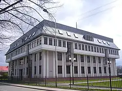 Im Februar 1964 entwickelte Chodakowski eine neue Kompromiss-Strategie zur Rettung des Schlosses.[21] Chodakowski wollte GIPROGOR davon überzeugen, dass ein neues Gebäude als Kontrast neben die Schlossruine gesetzt werden könne, statt auf den Fundamenten eines abgebrochenen Schlosses. Dadurch würde man die „Geschichte der Stadt nicht auslöschen“.[10]