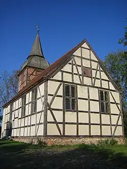 - Fachwerkkirche, um 1788 erbaut, mit quadratischem westlichen Dachreiter
