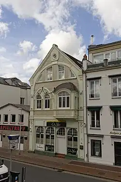 Das zweigeschossige giebelständige Gebäude mit ziegelgedecktem Satteldach und Erker wurde um 1902 für W.F.E. Böttcher als Weinhandlung mit Weinstube und Wohnhaus gebaut. Die symmetrische Straßenfassade, historisierend und auch im Jugendstil, mit glasierten Verblendsteinen wurde gestaltet und gegliedert durch einen großen markanten Rundbogen, den verputzten verzierten Lisenen und einem mittigen dekorierten Element, den rundbogigen Fenstern sowie den Gesimsen.[1]