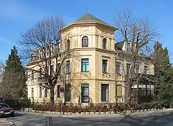 Nach Norden und nach Westen erstrecken sich die beiden zweigeschossigen Flügel, die einen fast geschlossenen Baukörper ergeben. Er steht auf einem Bruchsteinsockel mit Sandstein-Einfassungen, obenauf befindet sich ein ausgebautes, abgeplattetes Walmdach. In der nördlichen Straßenansicht zur Zillerstraße steht eine hölzerne, eingeschossige Veranda mit einem Austritt obenauf, im Dach stehen zwei sandsteingefasste Dachgauben. In der Straßenansicht zur Winzerstraße steht am Westende ein einachsiger Seitenrisalit mit einem Pyramidenstumpfdach, in der Mitte der Ansicht hängt ein Balkon mit Eisengittern, gestützt durch Sandsteinkonsolen. Im Dach stehen vier sandsteingefasste Dachgauben.