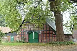 Das eingeschossige giebelständige Gebäude als Zweiständer-Hallenhaus in gleichmäßigem Fachwerk mit Steinausfachungen, mit Satteldach, Niedersachsengiebel mit Uhlenloch, Pferdeköpfen und Grooter Door mit Korbbogen wurde 1797 für Gustav und Lisa Breckmann (Inschrift) gebaut. Das obere Giebeldreieck wurde regionaltypisch vertikal verbrettert. Im Inneren ist das Haus größtenteils unverändert erhalten.[1] An der linken Seite wurde ein Schuppen mit Pultdach später angefügt.