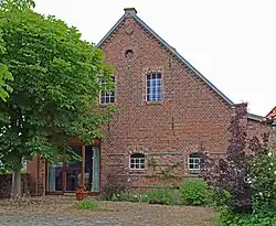 - dem eingeschossigen Gebäude aus dem 18. Jahrhundert, ein Hallenhaus in Fachwerk mit Ziegelausfachungen, mit reetgedecktem Krüppelwalmdach, Niedersachsengiebel mit Uhlenloch am Dachfirst sowie dem Grooten Door mit Korbbogen,