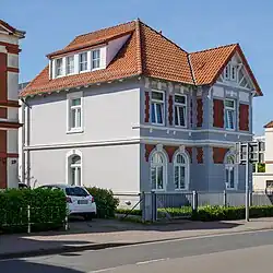 Das Wohnhaus Hafenstraße 21, Ecke Marktstraße, im niedersächsischen Nordenham im Landkreis Wesermarsch, stammt vom Anfang des 20. Jahrhunderts.