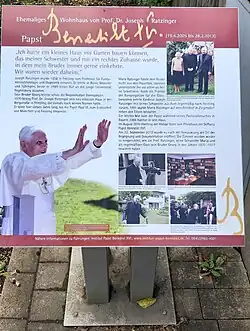- ↑ Benedikt XVI. besucht sein ehemaliges Wohnhaus in Pentling, BR24, 21. Juni 2020, abgerufen am 23. Juni 2020.