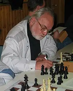 1. d4 Sf6 2. c4 c5 3. d5 e6 4. Sc3 exd5 5. Sxd5 Sxd5 6. Dxd5 Sc6 7. Sf3 Le7 8. g3 d6 9. Lg2 Le6 10. De4 0–0 11. 0–0 d5 12. cxd5 Lxd5 13. Dd3 Lf6 14. Sg5 Lxg5 15. Dxd5 Dxd5 16. Lxd5 Lf6 17. Le3 Sd4 18. Lxd4 Lxd4 19. Tac1 Tab8 20. e3 Lxb2 21. Txc5 b6 22. Tc7 Positioneller Vorteil für Weiß durch den Turm auf der siebten Reihe. 22. … a5 23. Tb1 La3 24. Tb3 Lc5 25. e4 Tbe8 26. a4 Kh8 27. Tf3 f6 28. g4 h6 29. Tb3 Te5 30. Kg2 Tfe8 31. f4! Txe4? 31. … Te7 ist vermutlich besser. 32. Lxe4 Txe4 33. Kf3 Txa4 34. Td3 Ld4 35. h4 h5 36. g5 Kh7 Es droht 37. g6. 37. Td7 Lb2 38. Tb7 Kg6 39. Td5 fxg5 Auf 39. … Tb4 gewinnt 40. f5+ Kh7, 41. g6+ Kh6, 42. Txb6! Txh4, 43. Txb2 oder 42. … Txb6, 43. Td8! Tb3+, 44. Ke2 mit undeckbarem Matt. 40. Txb6+ Lf6 41. hxg5 Ta3+ 42. Kg2 Ta2+ 43. Kh3 Ta3+ 44. Kh4 Ta4 45. gxf6 Txf4+ 46. Kg3 Tg4+ 47. Kf3 Schwarz gab auf.