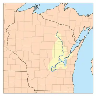 ![]() Einzugsgebiet des Fox River: Fox River (unten links) und Wolf River (darüber) | ||
