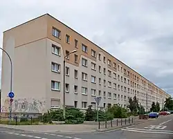 Beim Wohnkomplex 1 handelt es sich um viergeschossige Altneubauten aus den 1960er-Jahren, die damals noch in der Stein-auf-Stein-Bauweise errichtet wurden. Die Komplexe 2 und 3 entstanden in den 1970er-Jahren als fünfgeschossige Plattenbauten, wobei diese im Komplex 2 noch in Zeilenbauweise errichtet wurden, während man im Komplex 3 schon dazu überging sie zu Rechtecken zu verbinden.