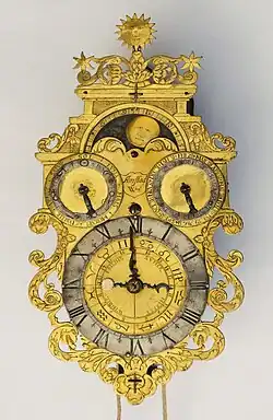 - um 1630, Wanduhr mit einer Kreuzschlaghemmung und astronomischen Indikationen[3] (British Museum) [1]