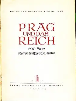 Wolfram von Wolmar organisierte im September 1942 eine Reise von acht tschechischen Schriftleitern und zwei Offizieren der Kollaborationsregierung in die besetzten Gebiete der Sowjetunion, die in der tschechischen Presse veröffentlichten Berichte kamen auch als Buch mit einem Vorwort Wolfram von Wolmars heraus. Ende 1942 wurde er in Prag abgelöst und als Offizier in die SS-Division „Prinz Eugen“ einberufen.[2] 1943 wurde er in Prag zum Dr. phil. promoviert; im selben Jahr wurde er habilitiert.[8]
