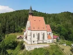 Die Kirche wurde von Artolf von Ofenpeck gestiftet, im Nordportal als „Anfenger des Gotshaus“ genannt. Er war Gefolgsmann der Kranichberger, Ursache der Stiftung war ein Streit zwischen Ofenpeck mit dem Pfarrer von Kirchberg. Bereits ab 1405 wurden Messen gelesen und eine Wallfahrt begonnen. Die Vollendung der Kirche erfolgte wohl von seinen zwei Söhnen im Jahr 1451, im Nordportal genannt.