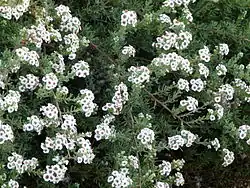 - Eriocephalus microcephalus DC.[10] Dieser Endemit gedeiht in Namaqualand nur in Höhenlagen oberhalb von 600 Metern am Gipfel von Bergen oder an hochgelegenen Berghängen und bildet meist dichte Bestände.[1] Sie wurde in der Roten Liste der gefährdeten Pflanzenarten Südafrikas ohne erfolgtes Monitoring automatisch als LC = Least Concern = nicht gefährdet eingetragen.[9]