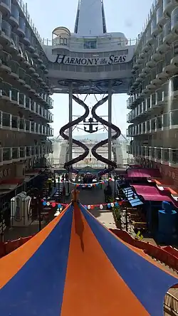 Im vorderen Teil des Kreuzfahrtschiffes liegt das Solarium. Dieses überdachte Areal enthält mehrere Whirlpools, die deutlich über den eigentlichen Schiffsrand hinausragen. Den Passagieren stehen auf den 18 Decks insgesamt 25 Bars sowie mehrere Restaurants zur Verfügung.[27]
