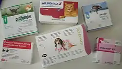 - ↑ a b c Zugelassene Anthelmintika für Hunde und Katzen. European Scientific Counsel Companion Animal Parasites (ESCCAP), 26. November 2014, abgerufen am 28. Februar 2023.