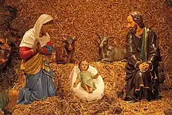 Am Dreikönigstag werden die Heiligen Drei Könige mit Gefolge aufgestellt. Insgesamt befinden sich 69 Figuren in der Krippenlandschaft. An der höchsten Erhebung ist der Verkündigungsengel mit dem Weihnachtsstern darüber zu sehen, in der Nordwestecke steht auf der Höhe die Burg des Herodes. Einige Tage vor Weihnachten wird der gesamte Kirchenraum weihnachtlich geschmückt und am Heiligen Abend fällt der Vorhang, hinter dem die Wurzelkrippe versteckt war.