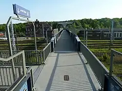 Vom südlich des Bahnhofs gelegenen Bahnhofsvorplatz führt eine Fußgängerbrücke über die Gleise. Die meisten Anlagen des Rangierbahnhofs und der Personenbahnsteig liegen östlich der Brücke, westlich von ihr befinden sich einige Zufahrtsgleise und die Anlagen des ehemaligen Bahnbetriebswerks.