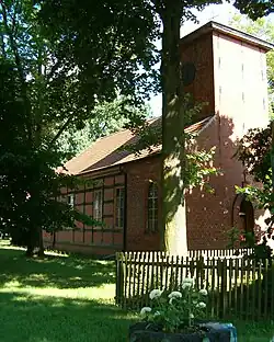 Den Mittelpunkt des Dorfes bildet die aus Fachwerk und Lehm als einfache einschiffige Hallenkirche ohne Turm errichtete Dorfkirche. Der heutige Kirchneubau aus unverputztem Fachwerk mit hohen rechteckigen Fenstern und Turm entstand um 1830 und 1882 erhielt die Kirche eine Glocke.