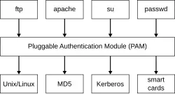 Statt die Einzelheiten der Authentisierung in jeder Applikation neu zu formulieren, bietet die PAM-API einen standardisierten Dienst in Form von Modulen an. In einer Konfigurationsdatei kann der Systemadministrator die Authentisierungsmodule einzelnen Diensten zuordnen, ohne dafür die Software, die diese Dienste realisiert, neu kompilieren zu müssen.