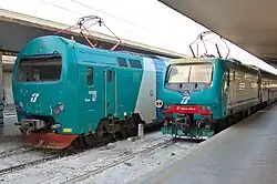 Anfangs wurden die Stirnflächen der Triebfahrzeuge fast vollständig grün lackiert. Zur besseren Sichtbarkeit wurde bei fast allen Baureihen im Bereich der Scheinwerfer ein breiter roter Streifen abgebracht (XMPR 1-Farbschema). Diese Farbkombination wurde für Triebwagen, die meisten Steuerwagen und die Monocabina-E-Loks der Baureihe E.464 beibehalten. Auf den übrigen elektrischen Lokomotiven wurde die grüne Farbe aus Gründen der besseren Sichtbarkeit nur noch im Bereich der Fenster angebracht, während der Bereich unterhalb der Fenster bis zu den Scheinwerfern nun in Hellgrau lackiert oder foliert wurde (XMPR 2-Farbschema).[5]