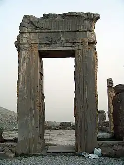 Die Inschrift XPr dürfte auf mindestens einer Seite der meisten steinernen Türrahmen des Palastes vorhanden gewesen sein. Dort, wo sie erhalten ist, ist sie in das Äußere der beiden vertieften Bänder eingraviert, die die Türöffnungen einrahmen. Die altpersische Sprachversion befindet sich an der Oberseite des Rahmens, die elamische auf der linken und die babylonische auf der rechten Seite. Fünf Überlieferungen befinden sich in situ (am Ursprungsort): am östlichen Türrahmen des Portikus auf der Westseite, am westlichen Türrahmen des Portikus auf der Westseite und am westlichen Türrahmen der Nordmauer der Haupthalle auf der Nordseite. Bei der letztgenannten fehlt die babylonische Sprachversion. Fragmentarisch erhalten sind die elamischen Sprachversionen am östlichen Türrahmen der Nordmauer der Haupthalle auf der Nordseite und am nördlichen Türrahmen des sogenannten Raums 10 auf der Südseite.[1]