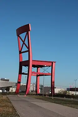 XXXLutz betreibt als eigene Marke eigene Möbelhäuser und seit 2014 einen eigenen Onlineshop.[51][52] Als Markenzeichen wurde im Jahr 2004 ein überdimensionierter roter Stuhl eingeführt, der auf den Parkplätzen vor den Möbelhäusern aufgestellt wird.[4][53] Mit einer Höhe von 30 Metern erhielt der rote Stuhl einen Eintrag ins Guinness-Buch der Rekorde als größter Stuhl der Welt.[54]
