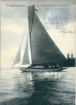 König Wilhelm II. war ein bedeutender Förderer des Segelsports und oft Segelgast bei Graf Zeppelin. Im Jahr 1905 erwarb er die Segelyacht Skidbladnir.[5] Die Yacht wurde von dem renommierten Yachtkonstrukteur Max Oertz gezeichnet und auf dessen Hamburger Werft gebaut. Der gaffelbetakelte Kutter hatte eine Segelfläche von 130 m2, war 16 m lang und verdrängte 7 t. Wegen der wechselnden Wasserstände am Bodensee und der geringen Wassertiefe des Schlosshafens war die Yacht ein Kielschwerter. Sie wurde von Wilhelm II. vor allem bei Regatten eingesetzt, die er aber selbst meist nur von seiner Motoryacht aus beobachtete.