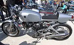 ![]() Yamaha TR 1 (1981), mit Krauser-Koffersatz, Sturzbügel und Windschutzscheibe nachgerüstet | |