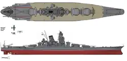 Die Yamato-Klasse (japanisch 大和型戦艦 Yamato-gata senkan) war eine Klasse von zwei Schlachtschiffen der japanischen Marine. Ursprünglich geplant waren fünf Einheiten von denen aber nur die ersten beiden, die Yamato und die Musashi, tatsächlich als Schlachtschiffe in Dienst gestellt und im Pazifikkrieg eingesetzt wurden. Diese blieben bis heute die größten, am schwersten bewaffneten und am stärksten gepanzerten Schlachtschiffe, die jemals gebaut wurden. Das dritte Schiff, die Shinano, wurde als Flugzeugträger fertiggestellt. Der Bau eines weiteren Schiffes wurde abgebrochen und der Rumpf verschrottet.[3]
