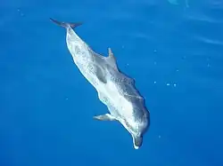 Seinen Namen hat dieser Delfin durch eine Zeichnung erhalten, die vom Kopf zur Finne verläuft.