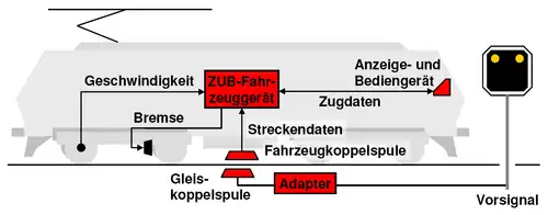 - ↑ Bereits seit 2003 sind bei Streckenneu- und umbauten an Stelle von ZUB-Gleiskoppelspulen Eurobalisen einzusetzen.