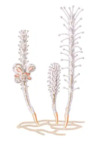 Die Hydroidpolypen wachsen kolonial und stolonal; die Stolonen kriechend. Stiele sind vorhanden, oft aber auch sehr kurz. Die Polypen können monomorph oder polymorph sein. Die Gastrozooide (Fresspolypen) sind zylindrisch oder spindelförmig, entweder mit einem Kranz capitater Tentakeln um den Mund und vielen verteilten capitaten oder perlschnurförmigen Tentakeln, oder mit reduzierten capitaten Tentakeln oder auch ohne Tentakeln. Die Gonozooide (Geschlechtspolypen) und Dayctolozooide (Wehrpolypen), wenn vorhanden mit capitaten Tentakeln, oder die Tentakel sind reduziert zu Nesselzellenfeldern.
