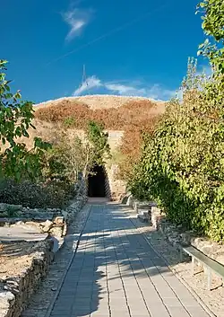 Es wird angenommen, dass der Zarenkurgan, ein Meisterwerk antiker Baukunst, die letzte Ruhestätte eines Herrschers des Bosporanischen Reichs war. Das entstand im 5. Jahrhundert v. Chr. aus den griechischen Kolonien im nördlichen Schwarzmeergebiet und am Asowschen Meer. Der Kurgan könnte insbesondere das Grab von Leukon I. gewesen sein.[2] Im Rahmen von Grabungen in den Jahren 1833 bis 1837 wurde der Kurgan geöffnet. Er enthielt allerdings nur Reste eines hölzernen Sarkophags, war also wahrscheinlich schon vor langer Zeit ausgeraubt worden. An den Wänden eingeritzte christliche Symbole lassen vermuten, dass der Grabraum frühen Christen als Zufluchtsort und Kultraum diente.[3]