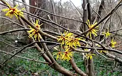 Winterblüte (Februar) einer Zaubernuss im Vogelsberg