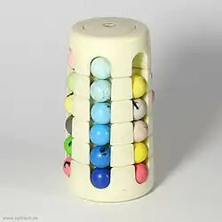 Das Spiel besteht aus einem „Zylinder“ aus Plastik, der in sechs ringförmige Ebenen eingeteilt ist. Die Ebenen lassen sich gegeneinander verdrehen.