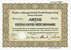 Unter dem Druck der Weltwirtschaftskrise schlossen sich die Gewerkschaften „König Ludwig“ und „Ewald“ in Herten zunächst zu einer Verkaufsvereinigung zusammen. Zur Gewerkschaft „Ewald“ gehörte neben der Zeche Ewald in Herten und der Zeche Ewald Fortsetzung in Oer-Erkenschwick auch die Zeche Haus Aden in Bergkamen. Am 31. Juli 1931 wurde beschlossen, sie zu einer Betriebsgemeinschaft zu vereinigen. Wie eng die Verbindung der beiden Gewerkschaften war, zeigt auch die Materialseilbahn, die Kohle von der Zeche „Ewald-Fortsetzung“ zur Aufbereitung der Zeche „König Ludwig“ 4/5 brachte. Am 21. Juni 1935 gründeten die beiden Unternehmen die Aktiengesellschaft Bergbau-AG Ewald-König Ludwig, kurz Ewald-König Ludwig AG.