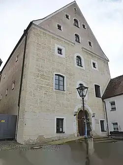 Der Zehentstadel von Beratzhausen (Paracelsusstraße 29) ist das frühere Kastenamt der Herrschaft Ehrenfels.